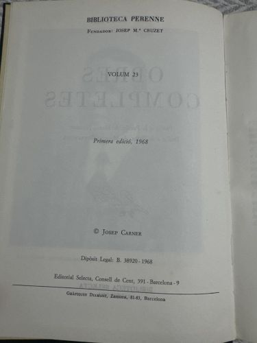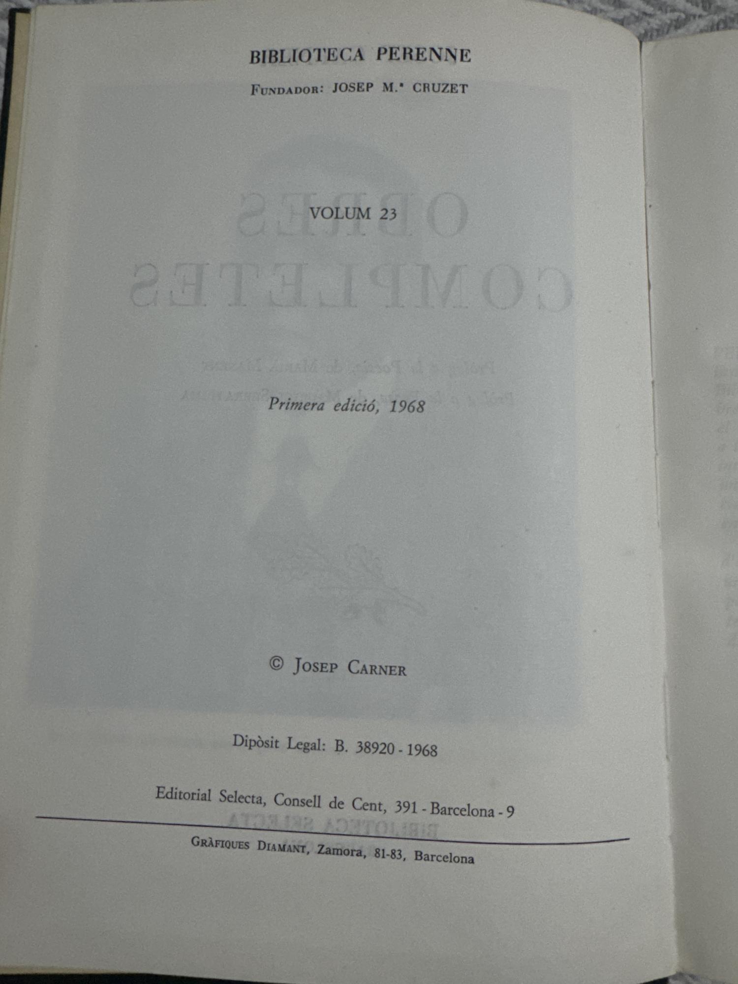 Obres completes de Josep Carner reuneix el conjunt de la producció literària d’un dels poetes cabdals de la literatura catalana. El volum inclou principalment poesia, però també prosa i textos diversos, i reflecteix una obra marcada pel rigor formal, la riquesa lèxica i una mirada irònica i moral sobre la vida i el món.