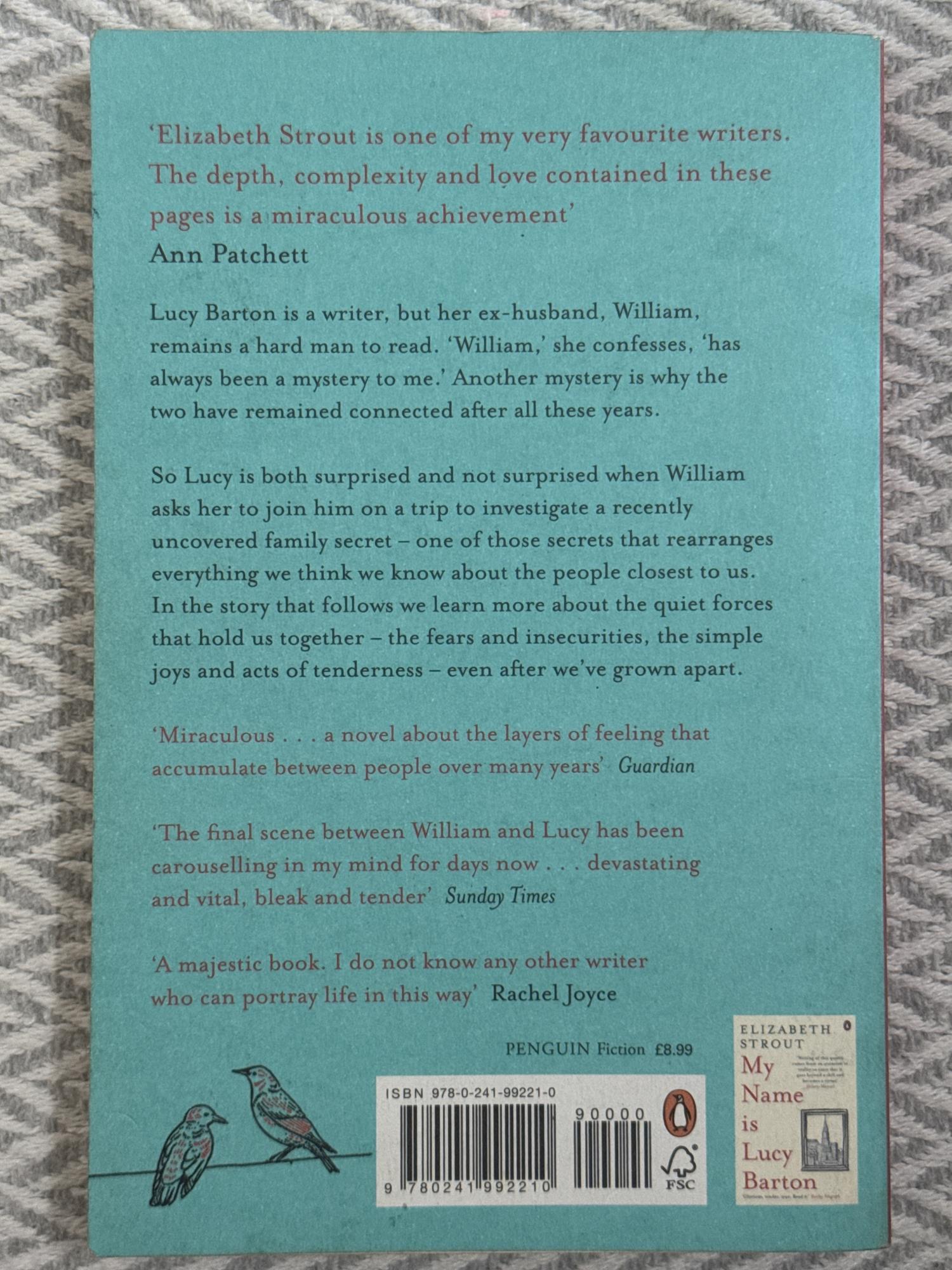 La narradora, Lucy Barton, reencuentra a su primer marido William después de muchos años y revisita su pasado conjunto, los secretos familiares, la disolución del matrimonio y la vida que siguieron con otras personas, lo que da lugar a una exploración íntima del amor, la pérdida y el paso del tiempo.