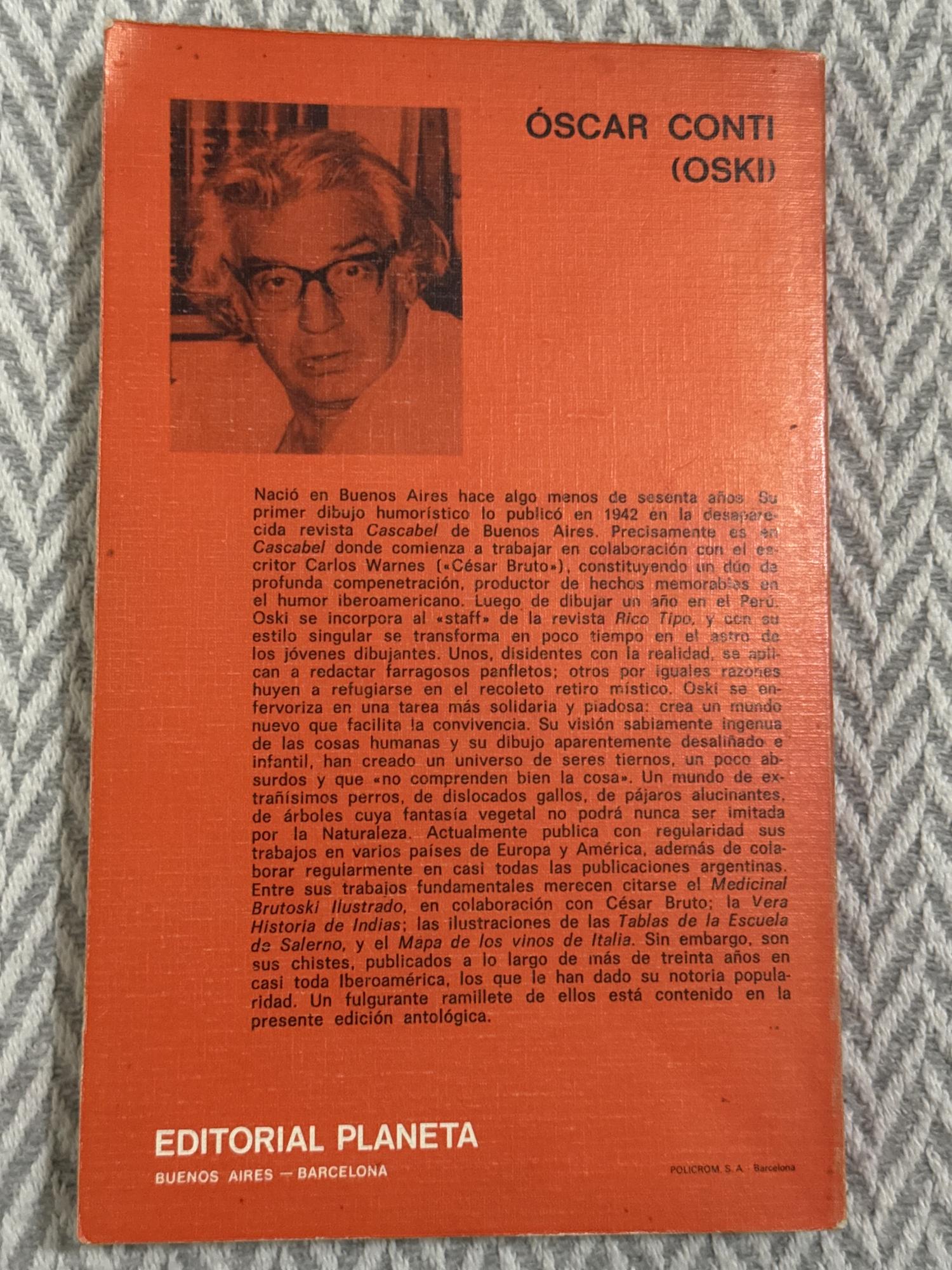 Recopila dibujos, viñetas e ilustraciones de Oski caracterizadas por un humor absurdo, crítico y visualmente muy personal. La obra juega con la historia, la cultura y el lenguaje desde una mirada irónica y surrealista. Destaca por su originalidad gráfica y su influencia en el humor ilustrado argentino.