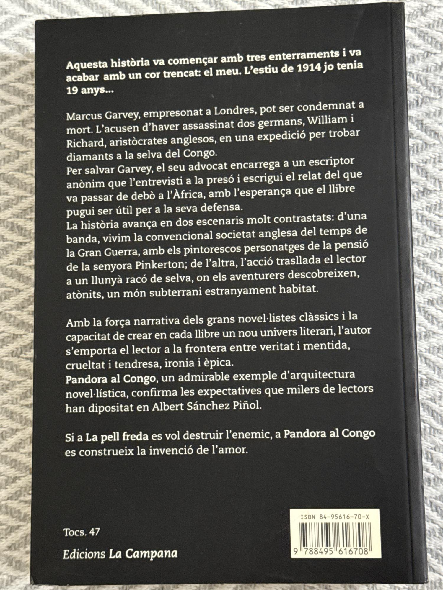 Pandora al Congo és una novel·la d’aventures i misteri ambientada a l’Àfrica colonial. Explica la història d’un jove escriptor que redacta la defensa d’un pres acusat d’assassinat, i a través del seu relat s’endinsa en una expedició al Congo plena d’intrigues, passions i elements fantàstics que qüestionen constantment què és veritat i què és ficció.