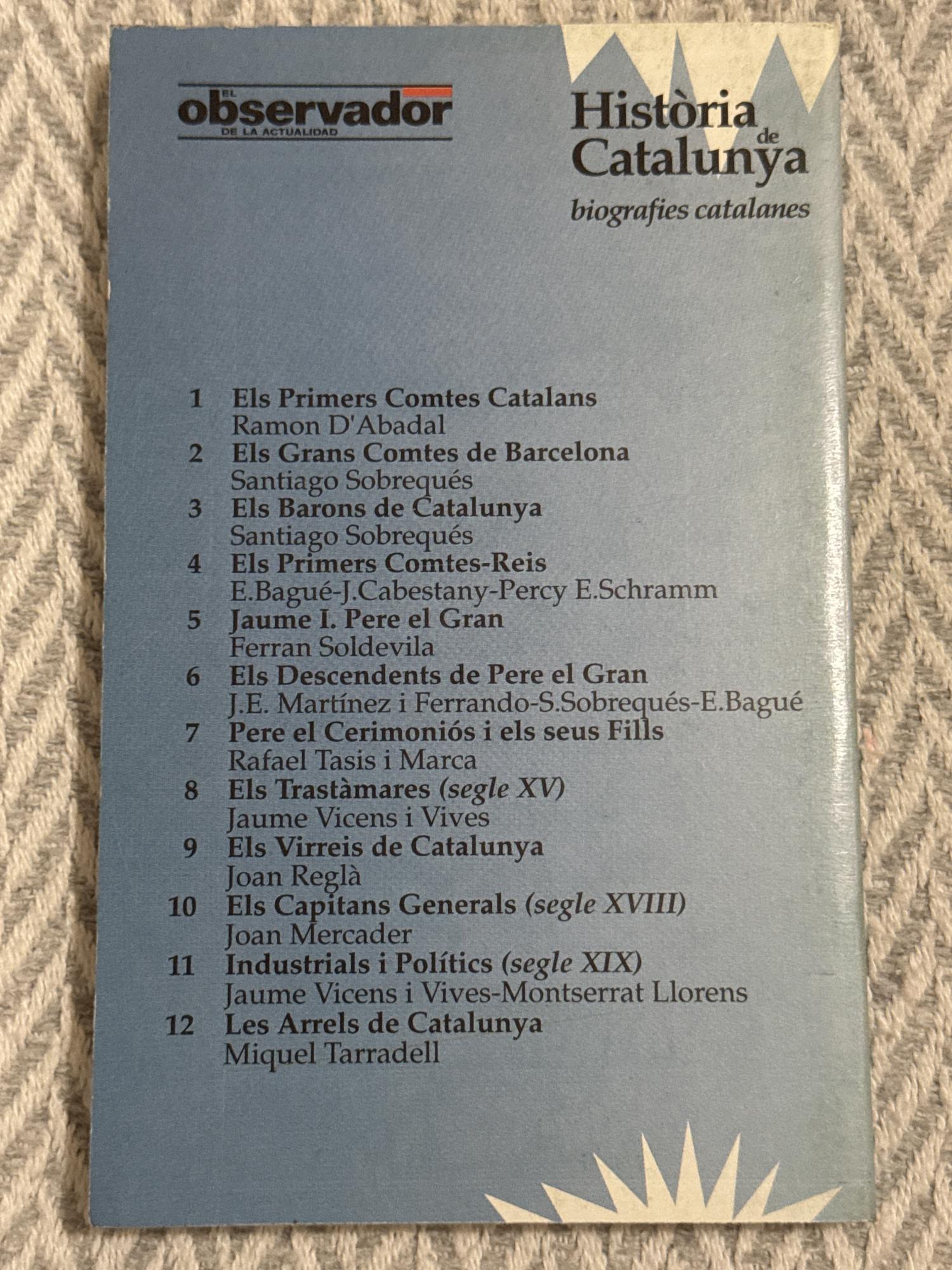 Aquesta obra estudia la figura de Pere I el Cerimoniós, rei d’Aragó al segle XIV, i la relació amb els seus fills, en el context polític, familiar i cortesà de l’època. Tasis analitza el poder reial, les intrigues de palau i el paper d’aquest monarca en la consolidació del regne.