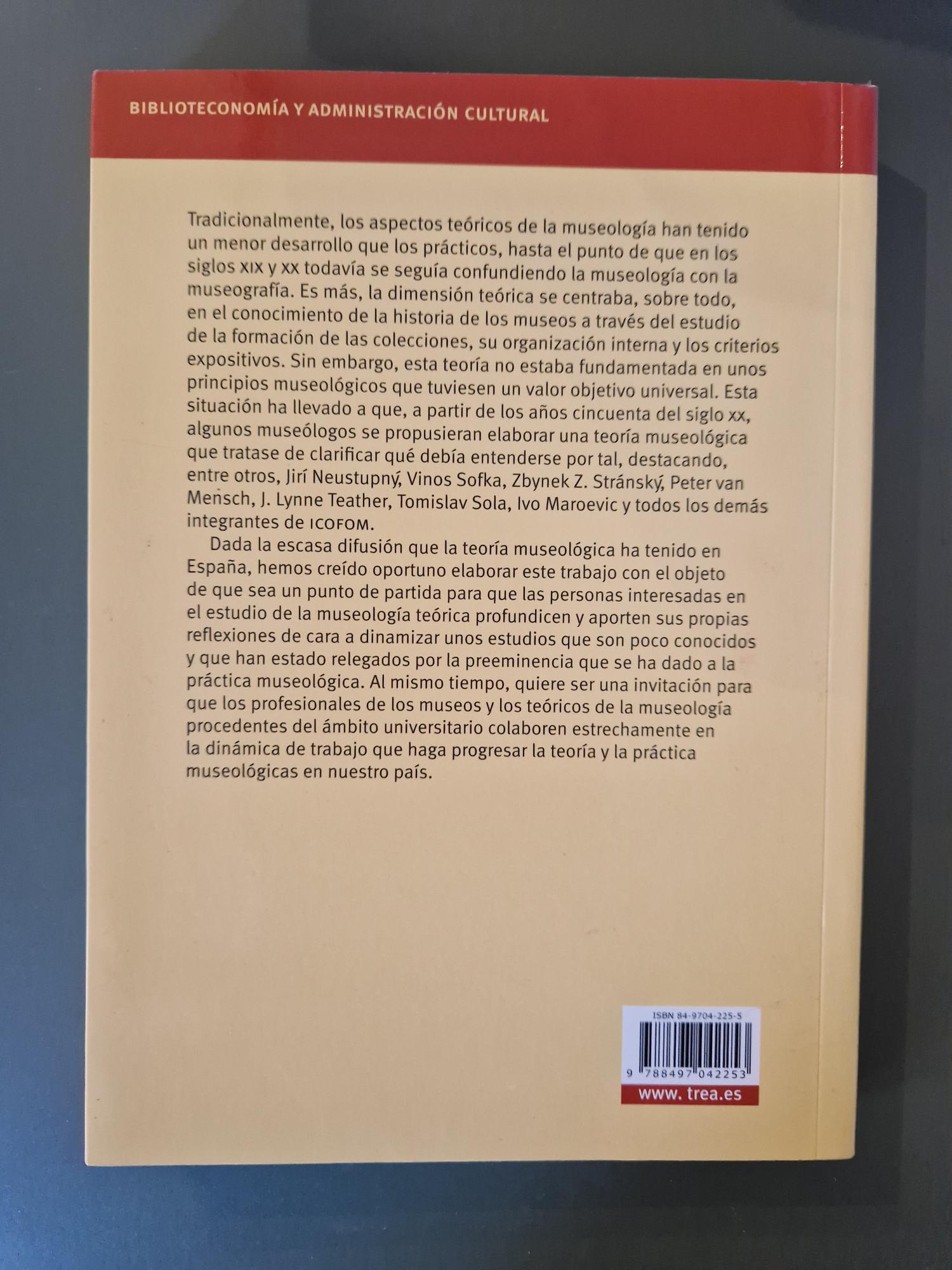 Planteamientos teóricos de la museología, de Francisca Hernández Hernández, es una obra clave que analiza los fundamentos conceptuales que han dado forma a la museología contemporánea. La autora revisa corrientes, modelos y debates que han redefinido el papel del museo como institución cultural, social y educativa. Con un enfoque riguroso y accesible, el libro ofrece una visión estructurada y profunda de las teorías museológicas, imprescindible para estudiantes, investigadores y profesionales del patrimonio.