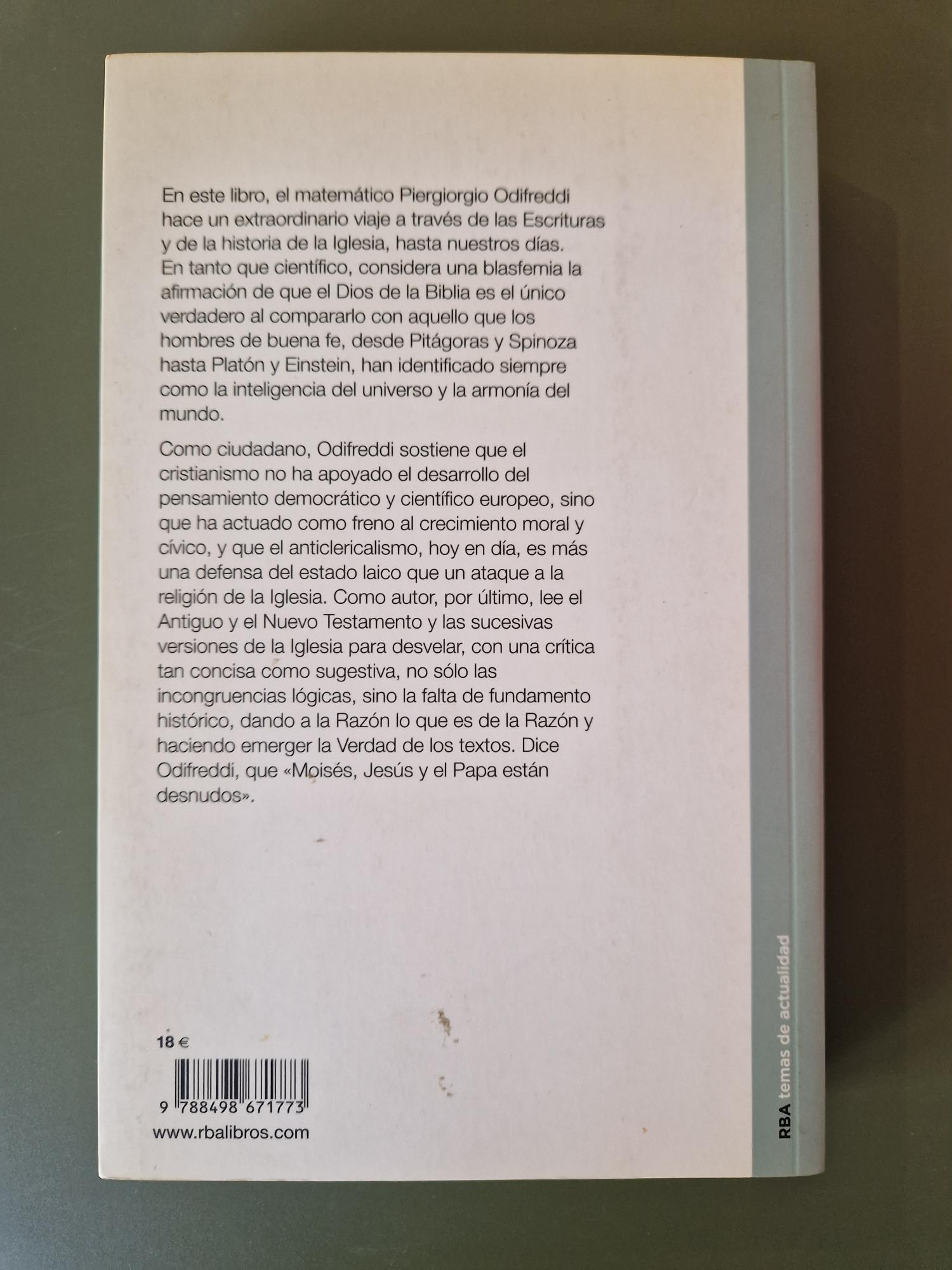 En este ensayo provocador, Piergiorgio Odifreddi examina los fundamentos del cristianismo y del catolicismo desde una perspectiva crítica y racionalista. A través del análisis de textos bíblicos y argumentos filosóficos, cuestiona las bases doctrinales de la fe cristiana. Con un estilo directo y polémico, el autor invita al lector a confrontar creencias tradicionales con el pensamiento lógico. Una obra que suscita debate sobre religión, razón y cultura contemporánea.