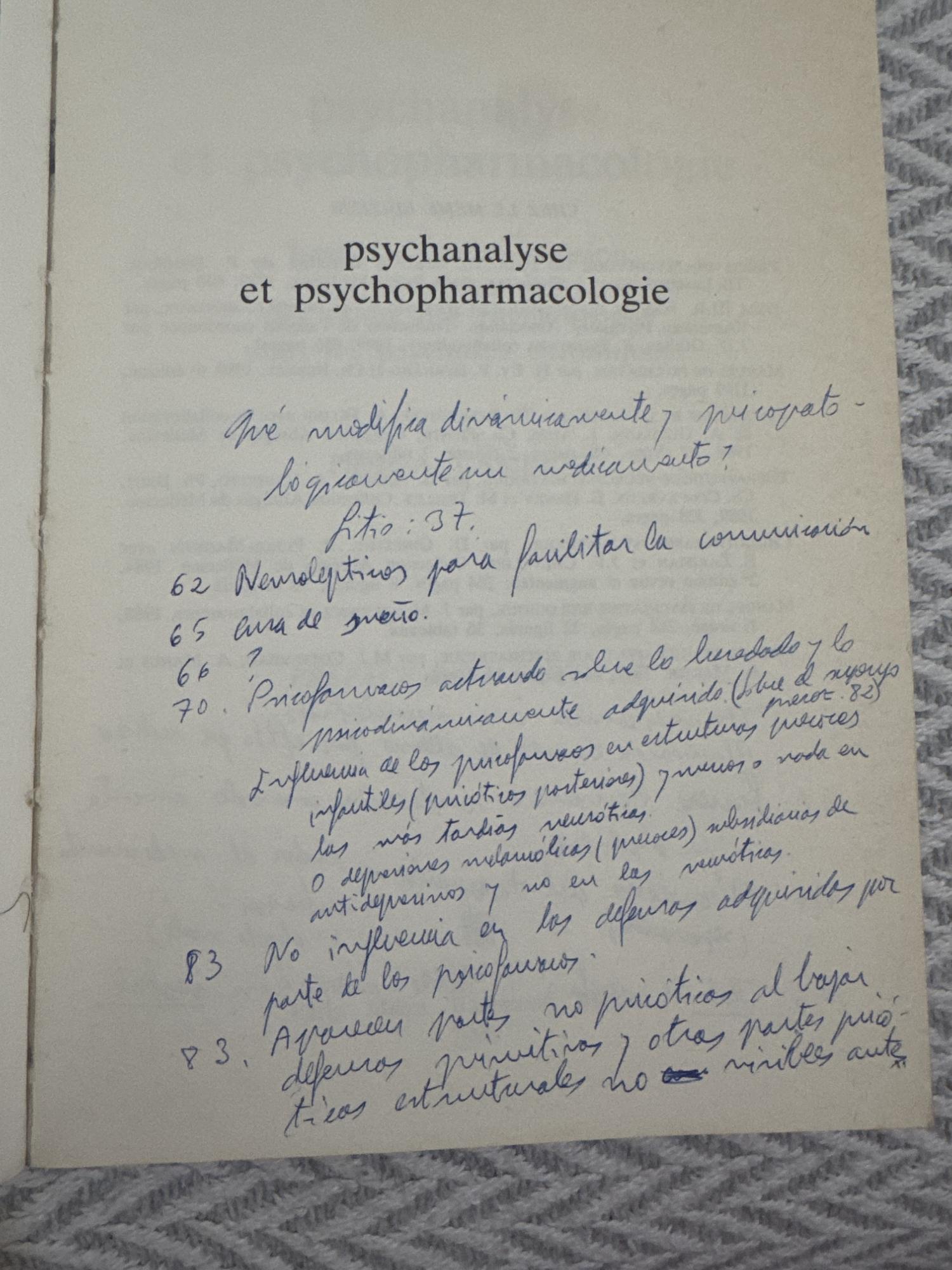 El libro examina de forma crítica y profunda cómo los tratamientos psicofarmacológicos influyen en la dinámica psíquica —ego, inconsciente, síntomas— en casos de psicosis crónicas. Propone una “comprensión psicodinámica” de los efectos de los psicofármacos, intentando integrar la mirada psicoanalítica con la intervención médica, y reflexionando sobre los límites, ventajas y riesgos de ese enfoque mixto. Es una obra dirigida sobre todo a profesionales de salud mental interesados en el vínculo entre psicoterapia y tratamiento farmacológico en contextos psiquiátricos.