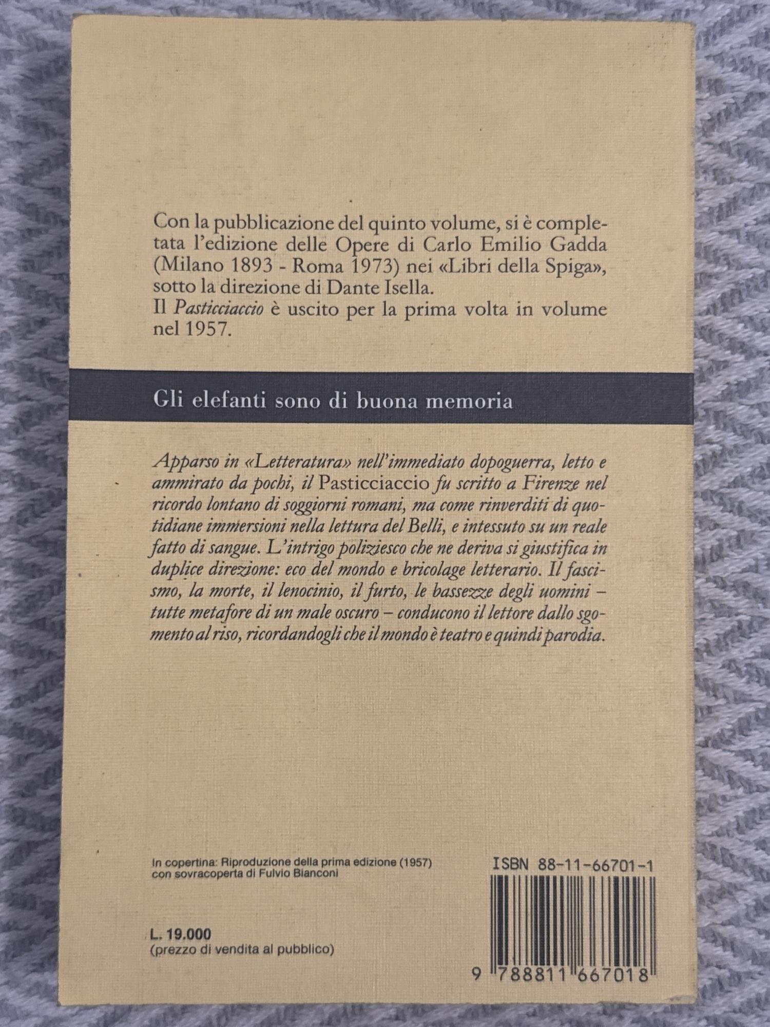La novela presenta una compleja investigación policial en la Roma de los años treinta, marcada por múltiples personajes y tramas entrelazadas. A través de un estilo rico y fragmentado, el autor retrata el caos y la ambigüedad de la realidad. Es una obra destacada de la literatura italiana que combina intriga con experimentación narrativa.