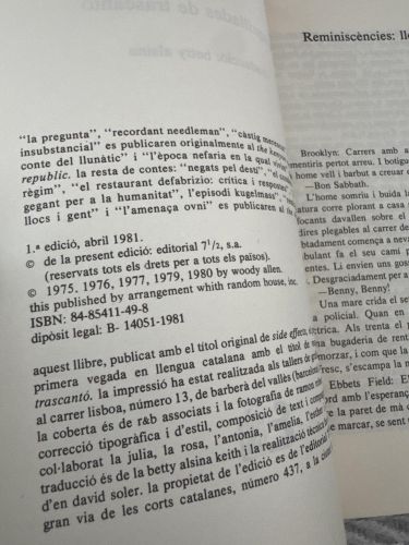 Resquillades de trascantó, de Woody Allen, és un recull de textos humorístics que combinen absurd, ironia i sàtira. A través de situacions exagerades i reflexions còmiques, l’autor parodia aspectes de la cultura, la filosofia i la vida quotidiana.