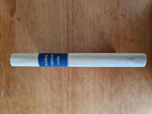 Tres libros en una misma encuadernación tapa dura holandesa. Ricardo Wagner: Ediciones Ave, 1940, 61 pp; Claudio Debussy: Unión musical española, 1921, 60 pp; Mauricio Ravel: Unión musical española, 1948, 52 pp. Buen estado. Firmado por el anterior propietario.