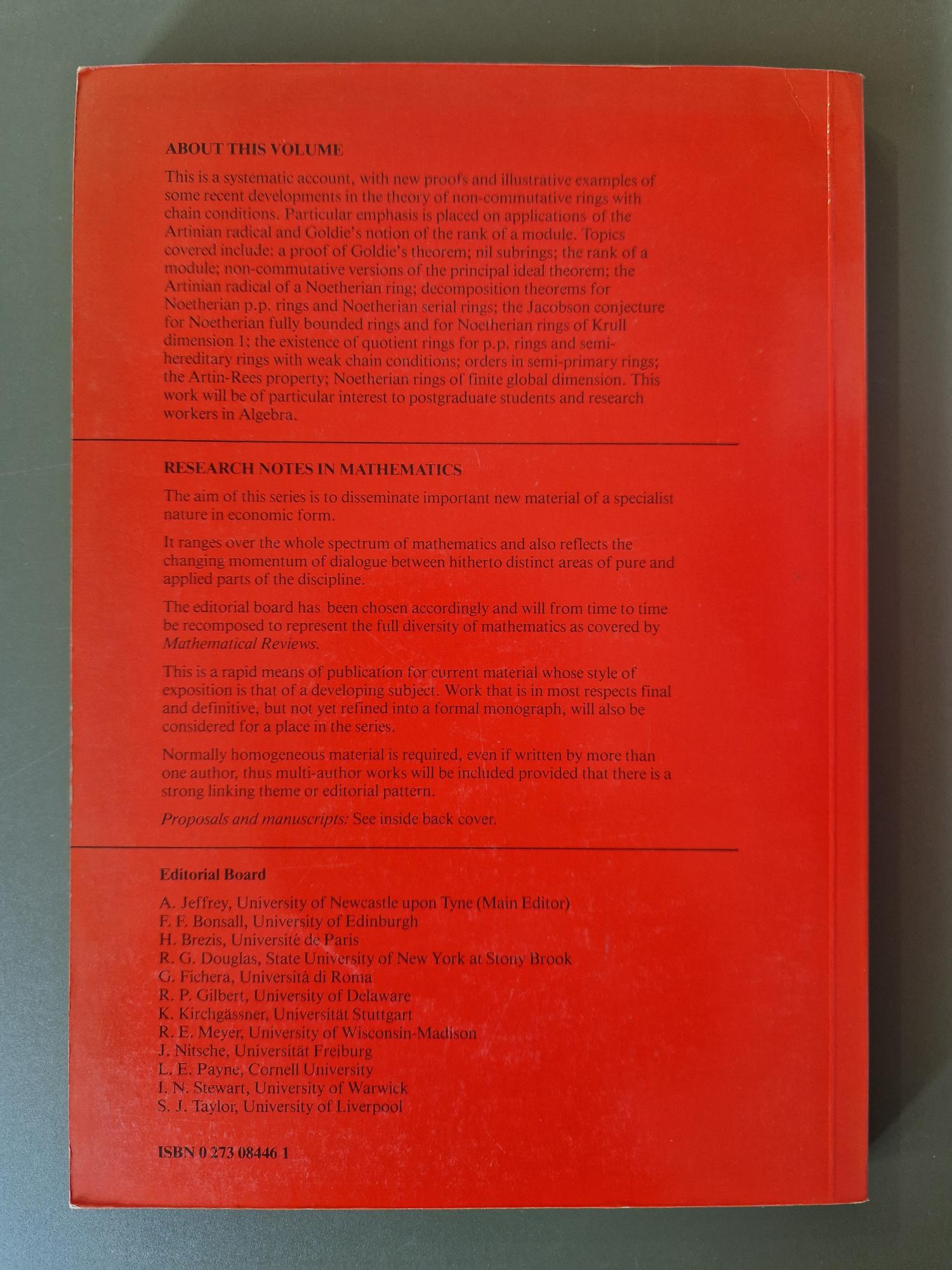 Rings with chain conditions (Research Notes in mathematics 44)
