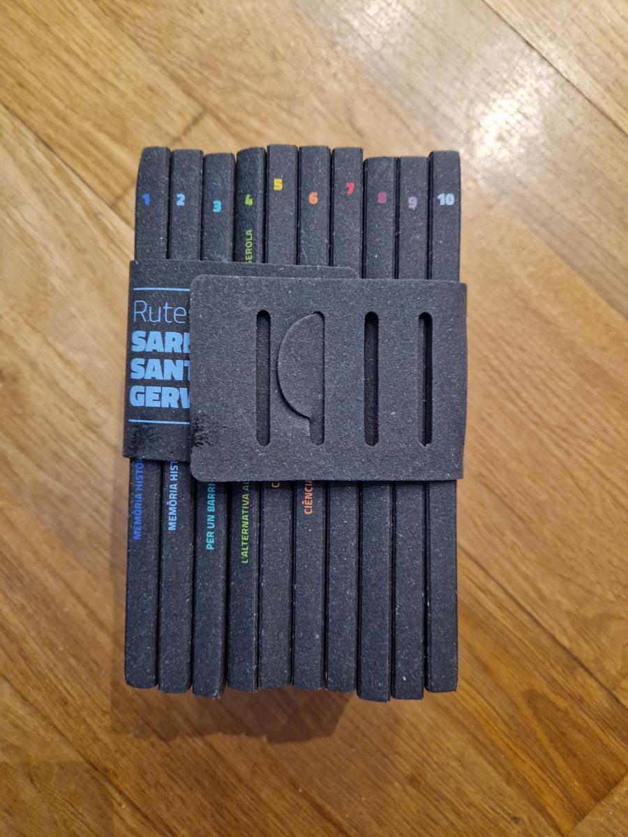 Ajuntament de Barcelona, sense data, 17x10cm cada llibret. 10 llibrets reunits en un estoig. 1. Memòria històrica del barri de Sant Gervasi, 2. Memòria històrica del barri de Sarrià, 3. Per un barri saludable: del bosc a la ciutat, 4. L'alternativa al pla cerdà: el modernisme a peus de Collserola, 5. Ciència i tecnologia a Sarrià, 6. Ciència i tecnologia a Collserola, 7. El Putxet i el Farró, 8. Galvany, 9. Vallvidrera, 10. Les tres Torres. Llibrets i estoig en molt bon estat.