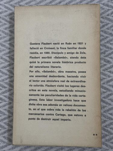 Salambó de Gustave Flaubert es una novela histórica ambientada en la Cartago del siglo III a. C., tras la Primera Guerra Púnica. La obra destaca por su reconstrucción erudita del mundo antiguo, su exotismo y su estilo descriptivo, explorando la violencia, el fanatismo religioso y las pasiones humanas.
