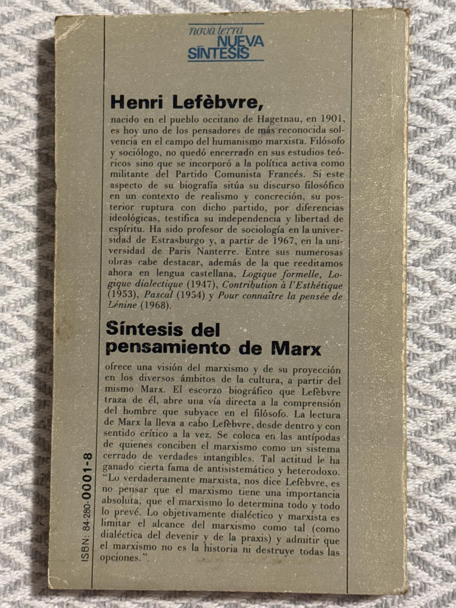 Síntesis del pensamiento de Marx es una obra que presenta de forma resumida las principales ideas del pensamiento de Karl Marx. El libro explica conceptos fundamentales como el materialismo histórico, la lucha de clases, la crítica al capitalismo y el papel de la economía en la organización de la sociedad, ofreciendo una introducción accesible a su teoría social y política.