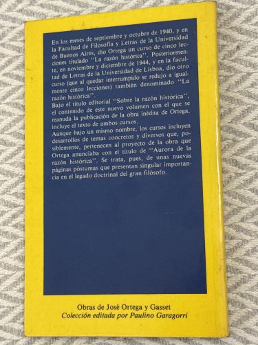 Sobre la razón histórica de José Ortega y Gasset es un ensayo filosófico en el que el autor desarrolla su concepción de la razón histórica como fundamento para comprender la vida humana y la realidad social. Ortega plantea que el ser humano solo puede entenderse desde su circunstancia histórica, integrando razón, experiencia y biografía.