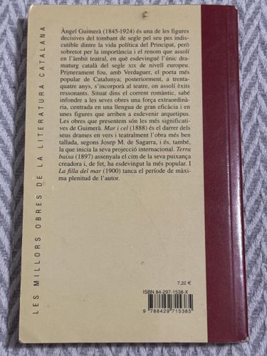 Aquest llibre és un recull de tres peces teatrals essencials en català de l’autor Àngel Guimerà: Mar i cel, Terra baixa i La filla del mar.