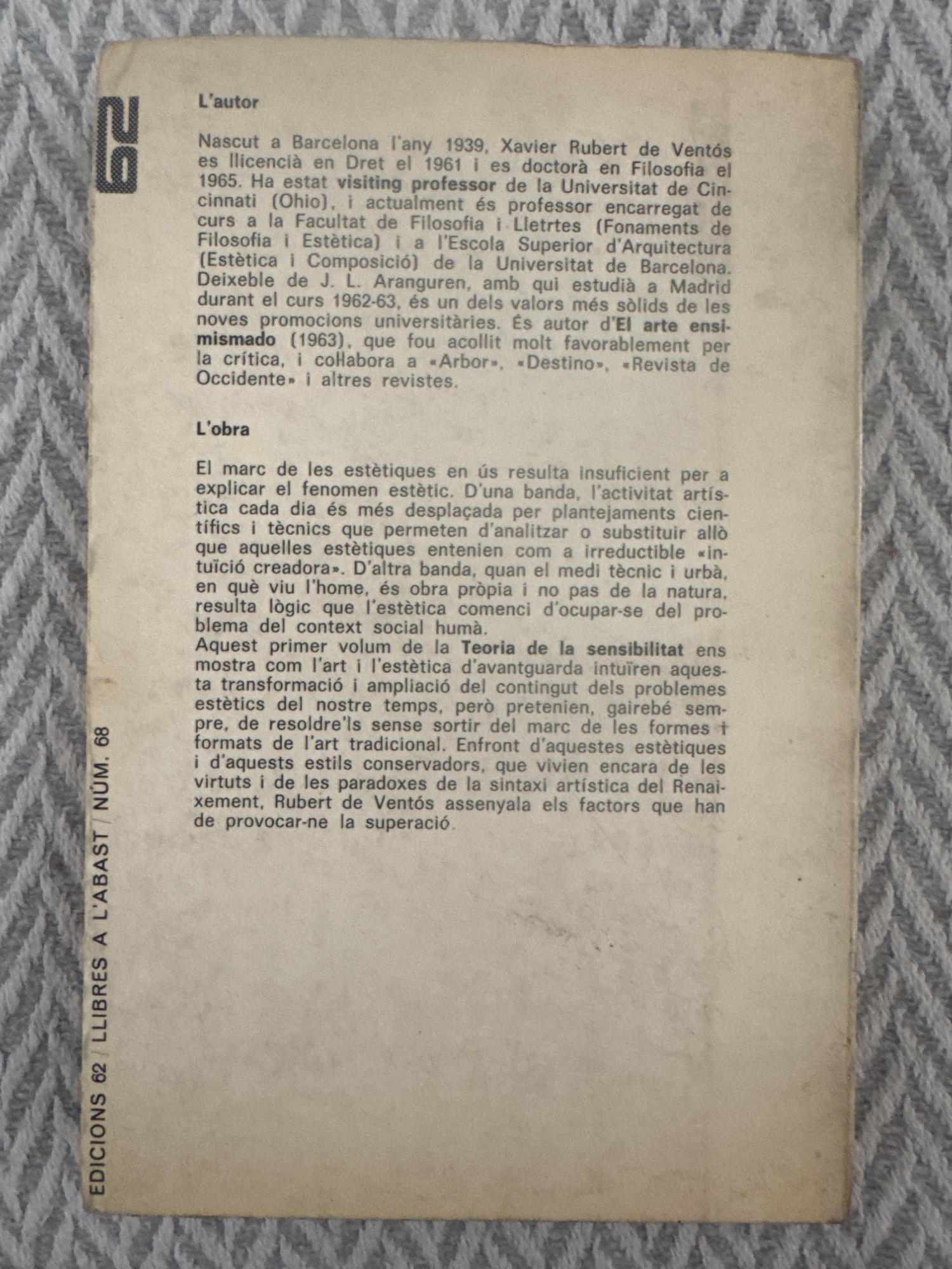 Teoria de la sensibilitat 1. La culminació del realisme clàssic, de Xavier Rubert de Ventós, és una obra que analitza l’evolució de la sensibilitat estètica en la tradició occidental, amb especial atenció al realisme clàssic. L’autor reflexiona sobre la percepció, l’art i la relació entre subjecte i realitat, situant el realisme dins d’un marc filosòfic més ampli.