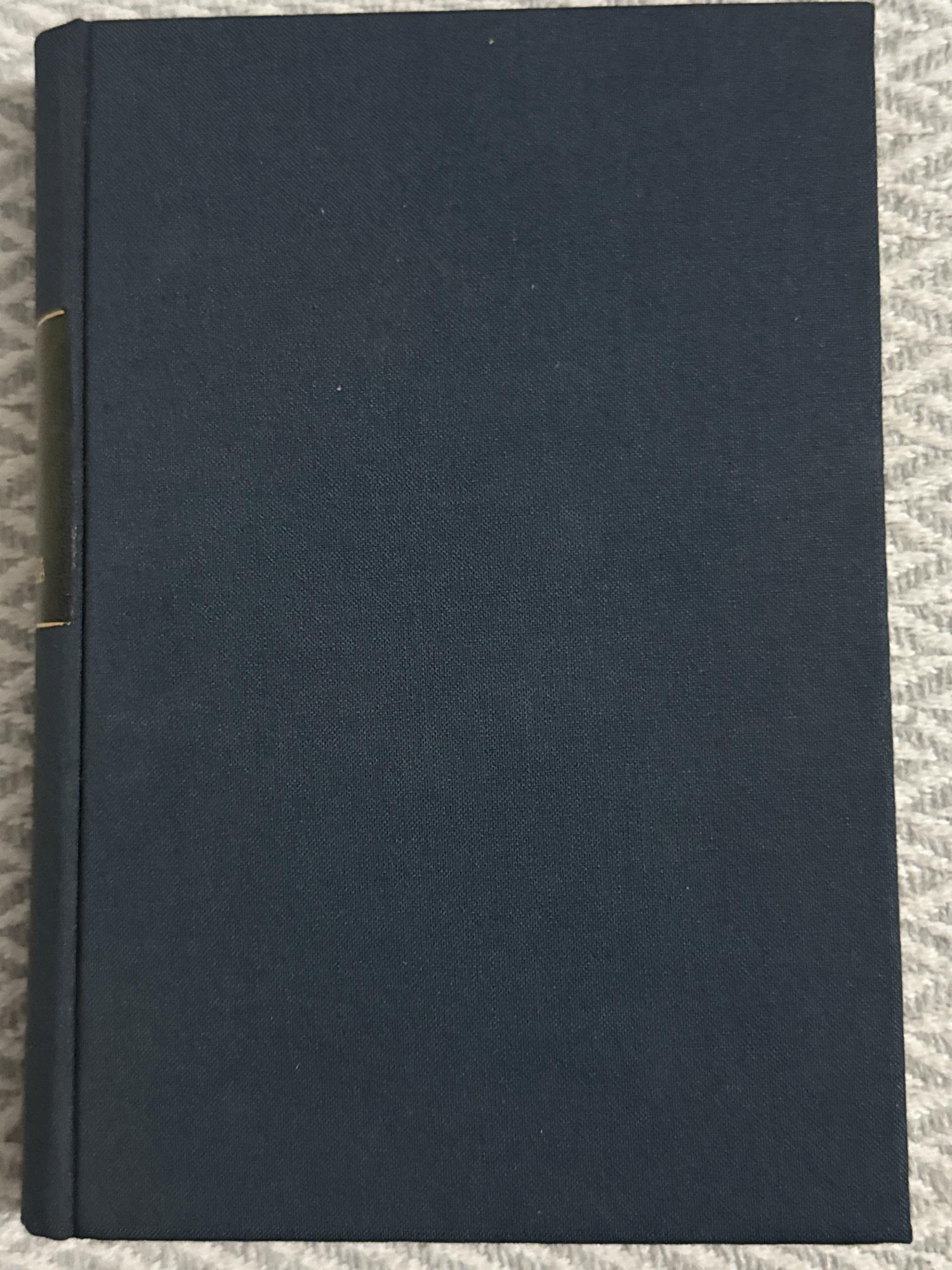 Libro reencuadernado en tapa dura y tela con título en el lomo.