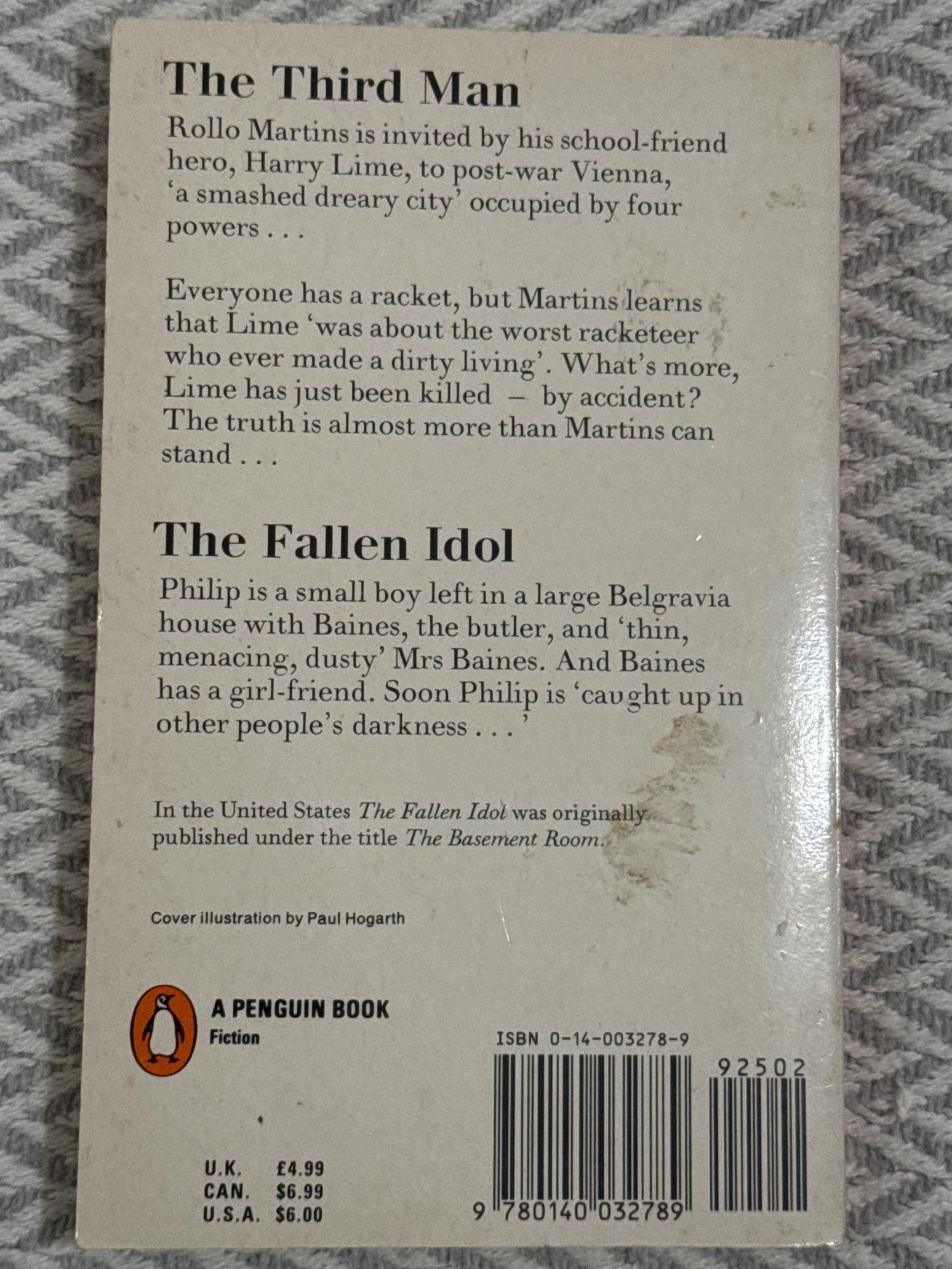 Este libro reúne dos relatos del autor Graham Greene: The Third Man y The Fallen Idol — historias de intriga, crimen y suspense ambientadas en contextos intrigantes. Ambos se caracterizan por su atmósfera de tensión, ambigüedad moral y desenlaces sorprendentes.
