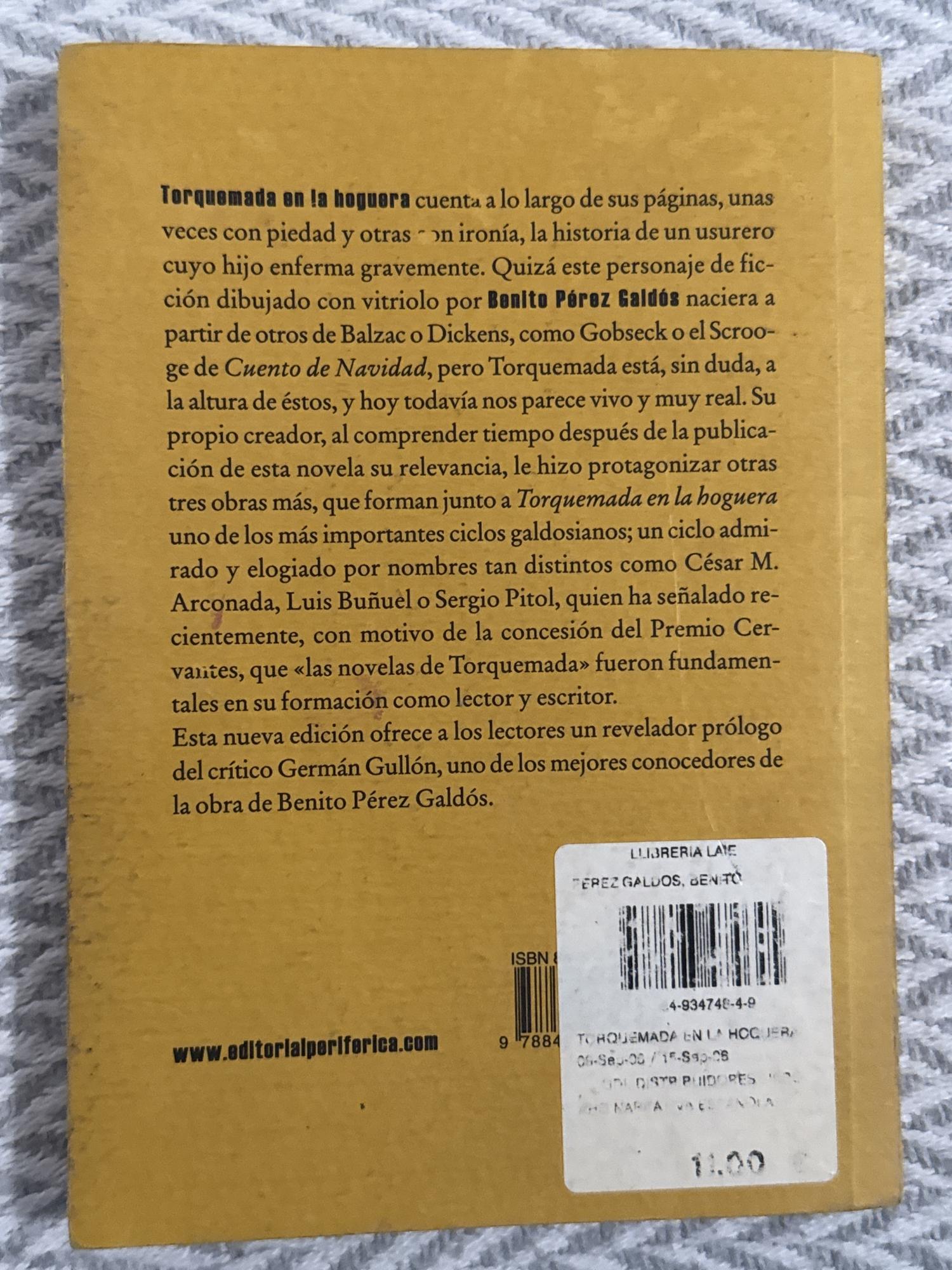 Novela breve que inicia la serie dedicada al personaje de Torquemada, un usurero obsesionado con el dinero y el ascenso social. A través de una situación personal crítica, la obra explora la psicología del protagonista y critica la moral burguesa de la época. Se inscribe dentro del realismo español con un marcado componente social y psicológico.