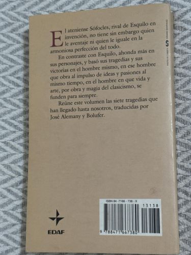 Este volumen reúne varias de las tragedias más importantes de Sófocles, uno de los grandes dramaturgos de la antigua Atenas. En estas obras, Sófocles explora los conflictos morales, los destinos trágicos y las pasiones humanas a través de personajes que enfrentan dilemas profundos entre el deber, el orgullo, la lealtad y la justicia.