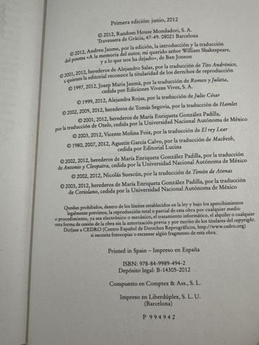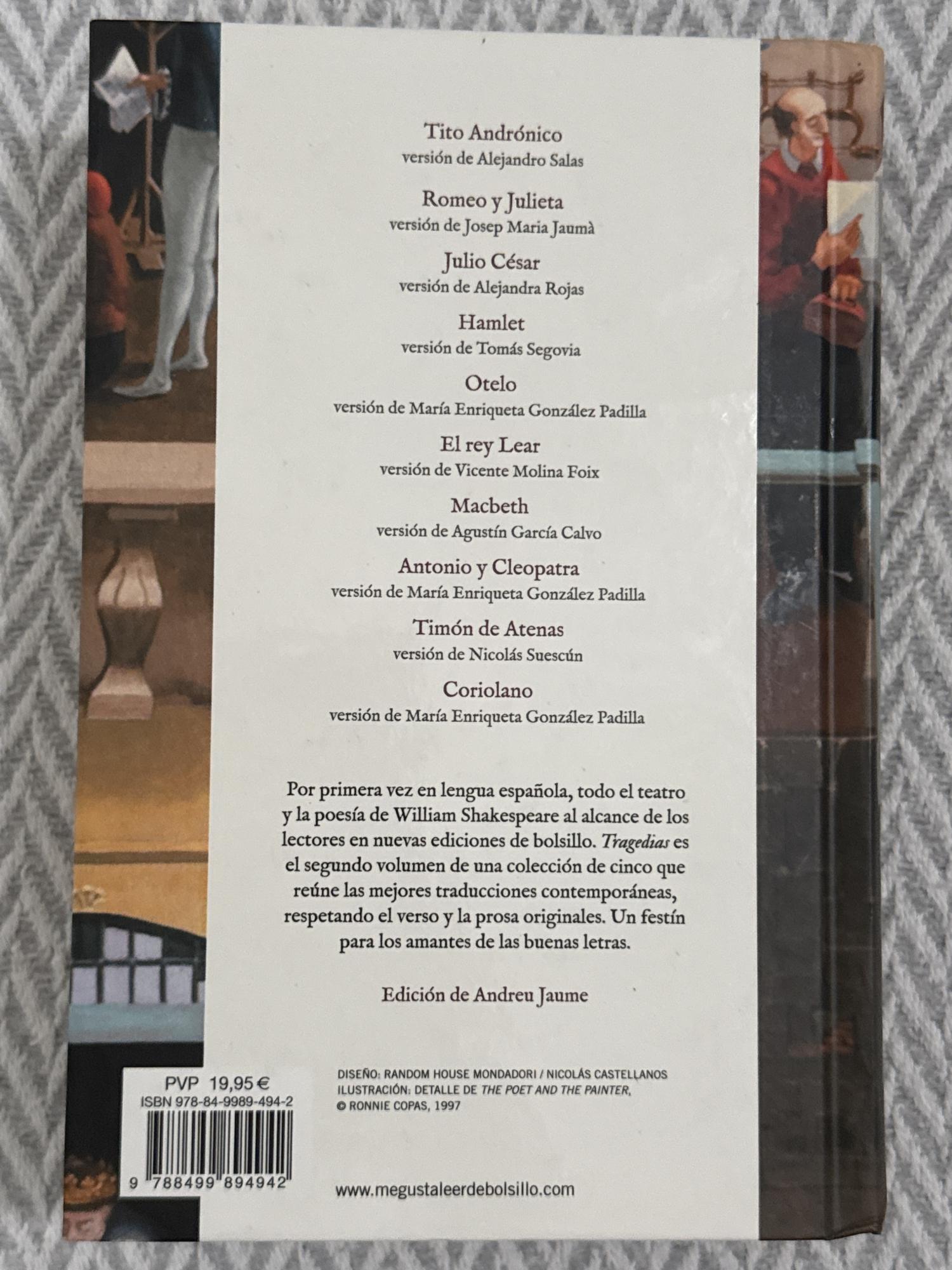 Reúne las grandes tragedias de Shakespeare, centradas en la ambición, el poder, los celos, la traición y el destino. A través de personajes complejos y conflictos extremos, las obras exploran la fragilidad humana y las consecuencias morales de las decisiones individuales. Constituyen uno de los pilares del teatro universal.