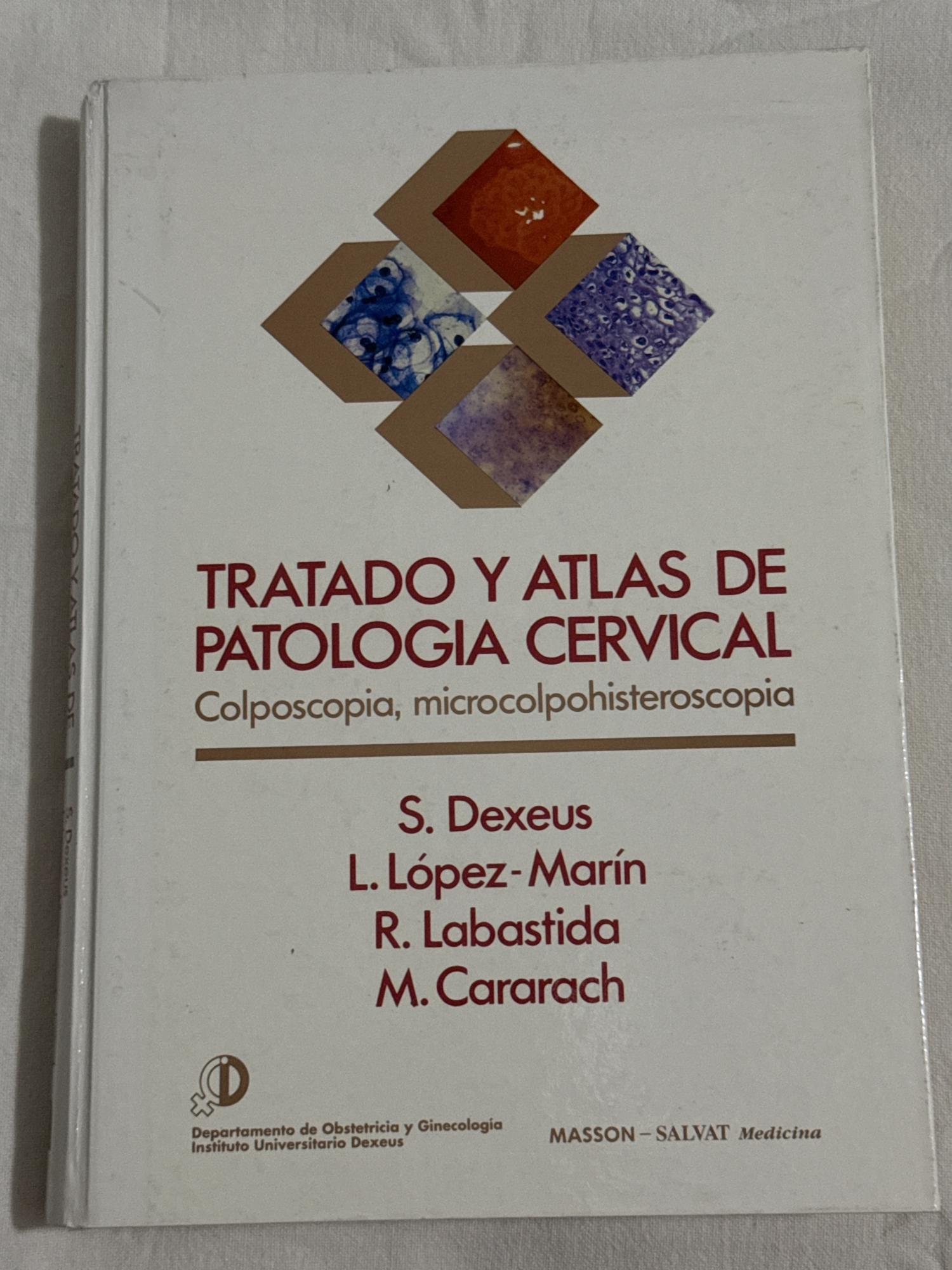 Tratado y Atlas de Patología Cervical de Santiago Dexeus es un manual que explica técnicas de colposcopia y microcolpohisteroscopia para diagnosticar y tratar enfermedades del cuello uterino, desde lesiones benignas hasta cáncer. Incluye muchas imágenes para facilitar el aprendizaje y es una referencia clave en ginecología.