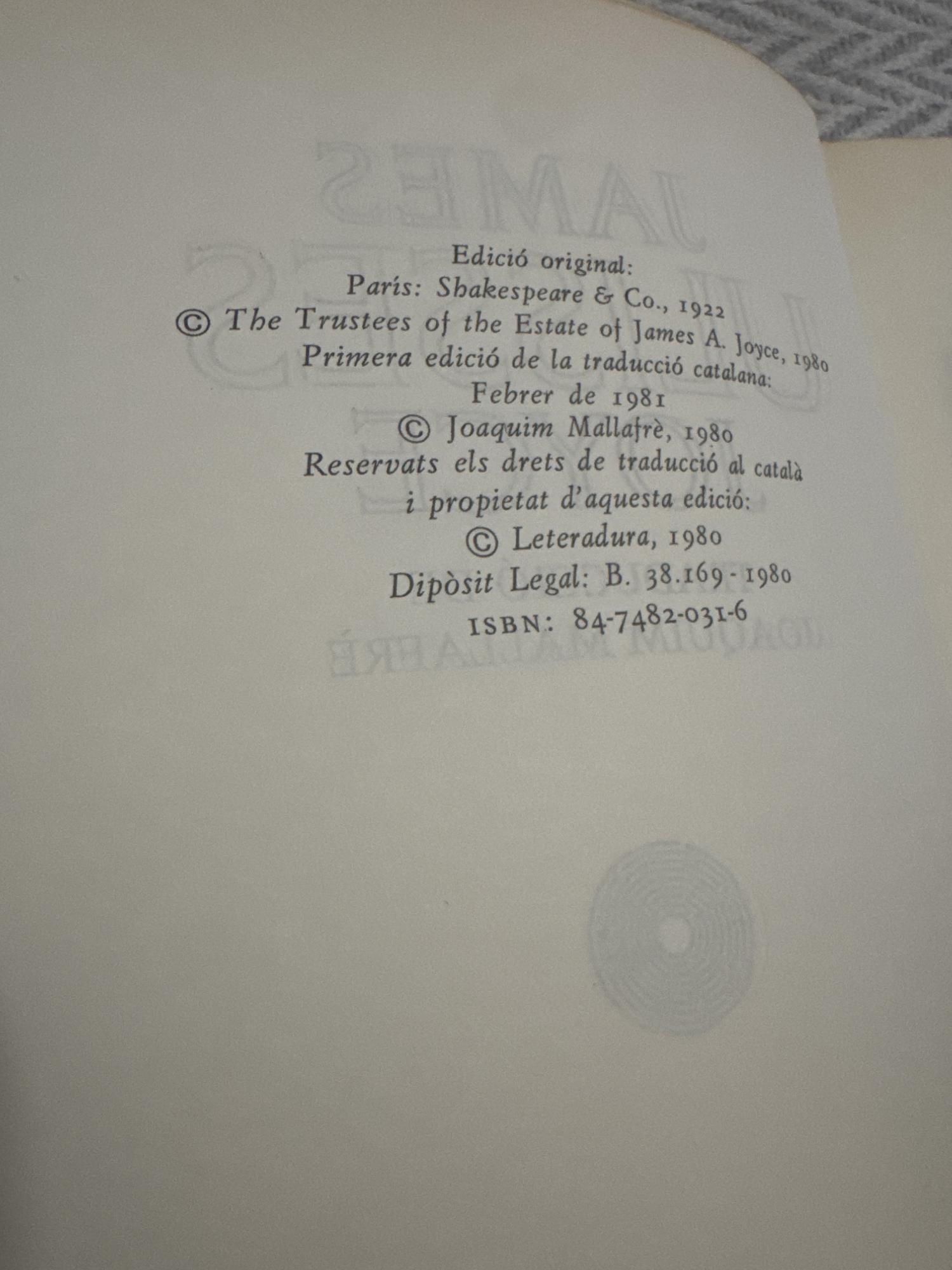 Ulisses, de James Joyce, és una novel·la que narra un sol dia a la vida de diversos personatges a Dublín, especialment Leopold Bloom. L’obra destaca per les seves innovacions formals i estilístiques, com el monòleg interior, i ofereix una exploració profunda de la consciència, la quotidianitat i la condició humana.