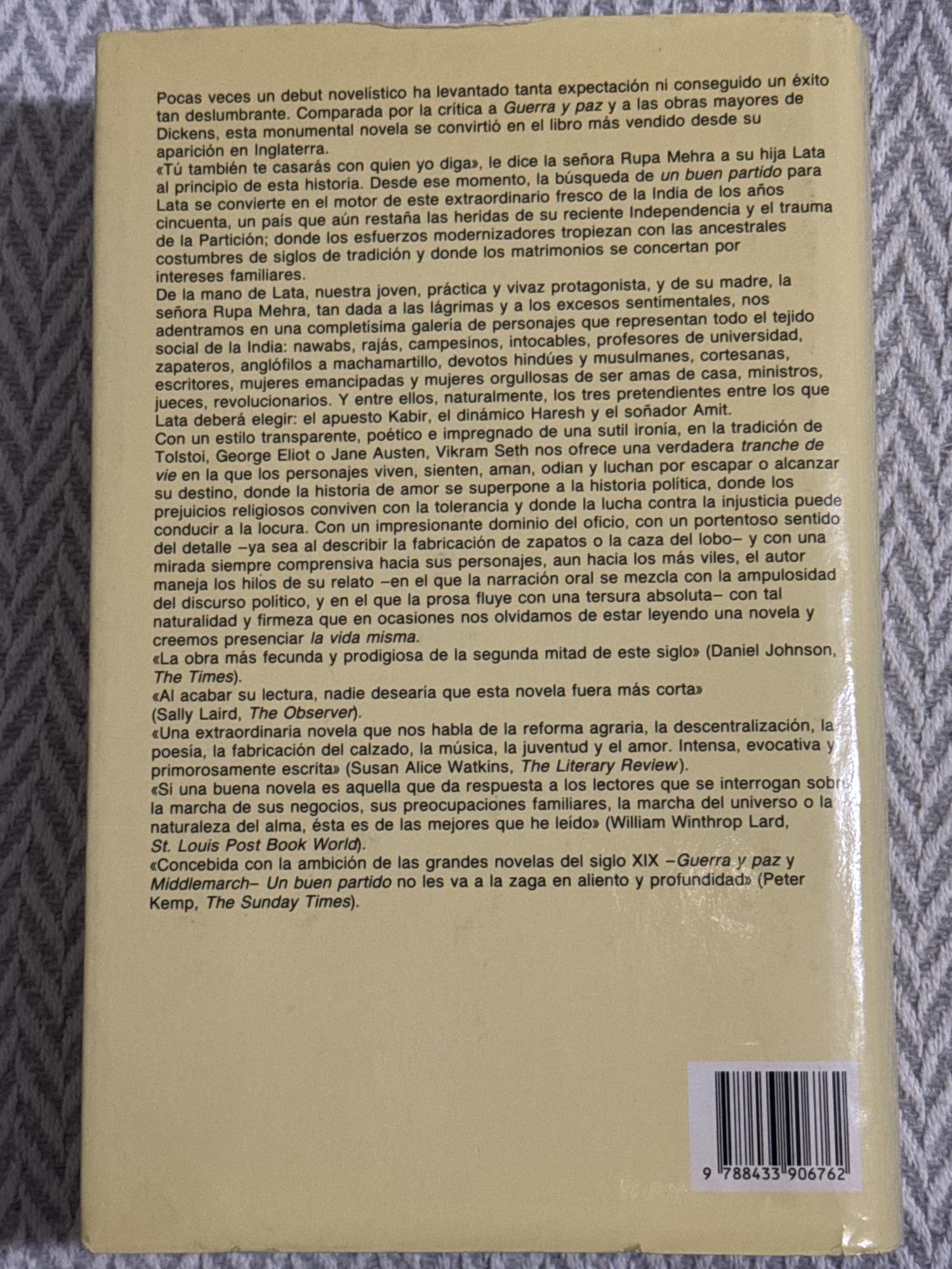 La novela gira en torno a Lata Mehra, una joven india de los años cincuenta, cuya madre le dice: «Tú también te casarás con quien yo diga». A partir de esa premisa, se desarrolla una trama amplia con múltiples personajes y subtramas, entrelazando asuntos románticos, políticos, sociales y culturales en la India post-independencia.