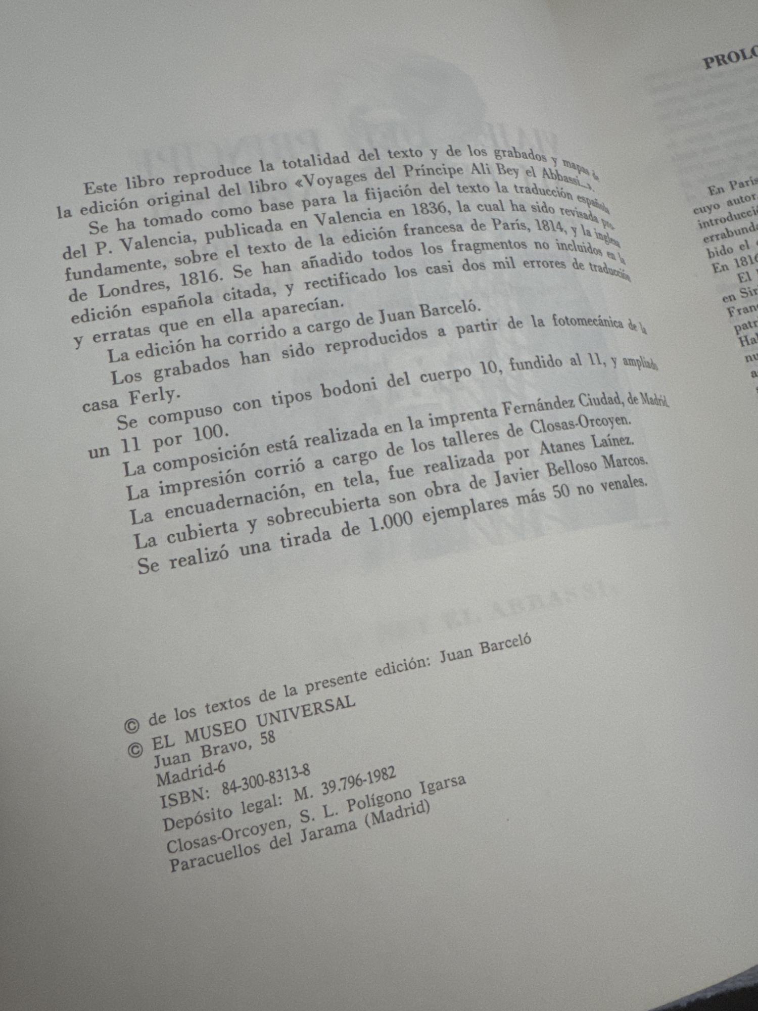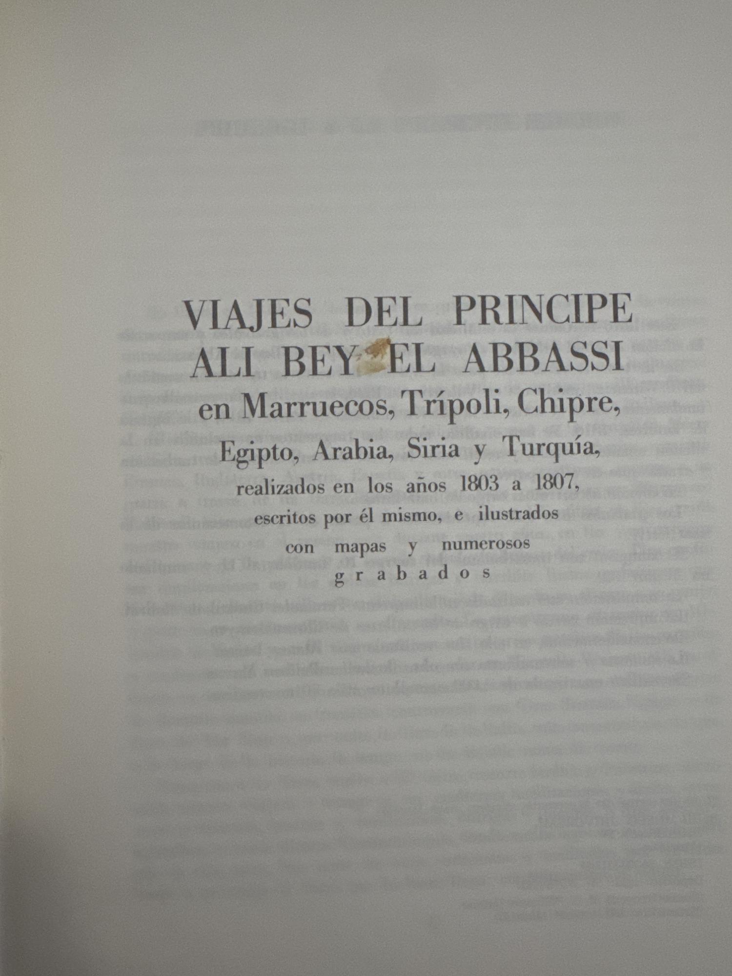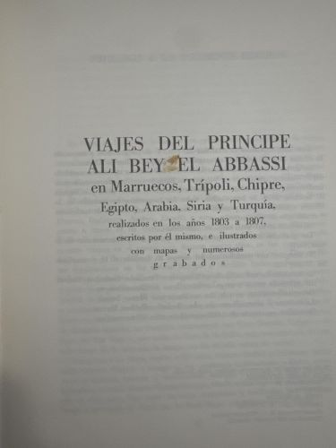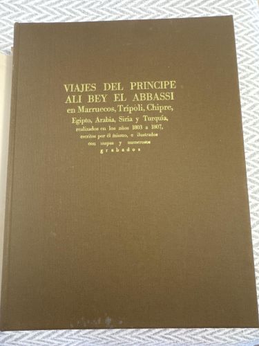 Viajes del príncipe Ali Bey el Abbassi en Marruecos, Trípoli, Chipre, Egipto, Arabia, Siria y Turquía, realizados en los años 1803 a 1807, escritos por él mismo, e ilustrados con numerosos mapas y numerosos grabados