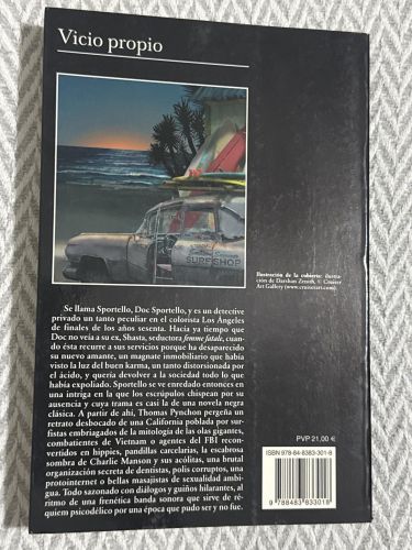 Ambientada en la California de finales de los años sesenta, sigue al detective privado Doc Sportello en una investigación caótica entre drogas, corrupción inmobiliaria y conspiraciones. La novela mezcla intriga criminal con humor ácido y crítica social del final de la contracultura hippie. Destaca por su estilo fragmentado, referencias culturales y tono irónico característico de Pynchon.