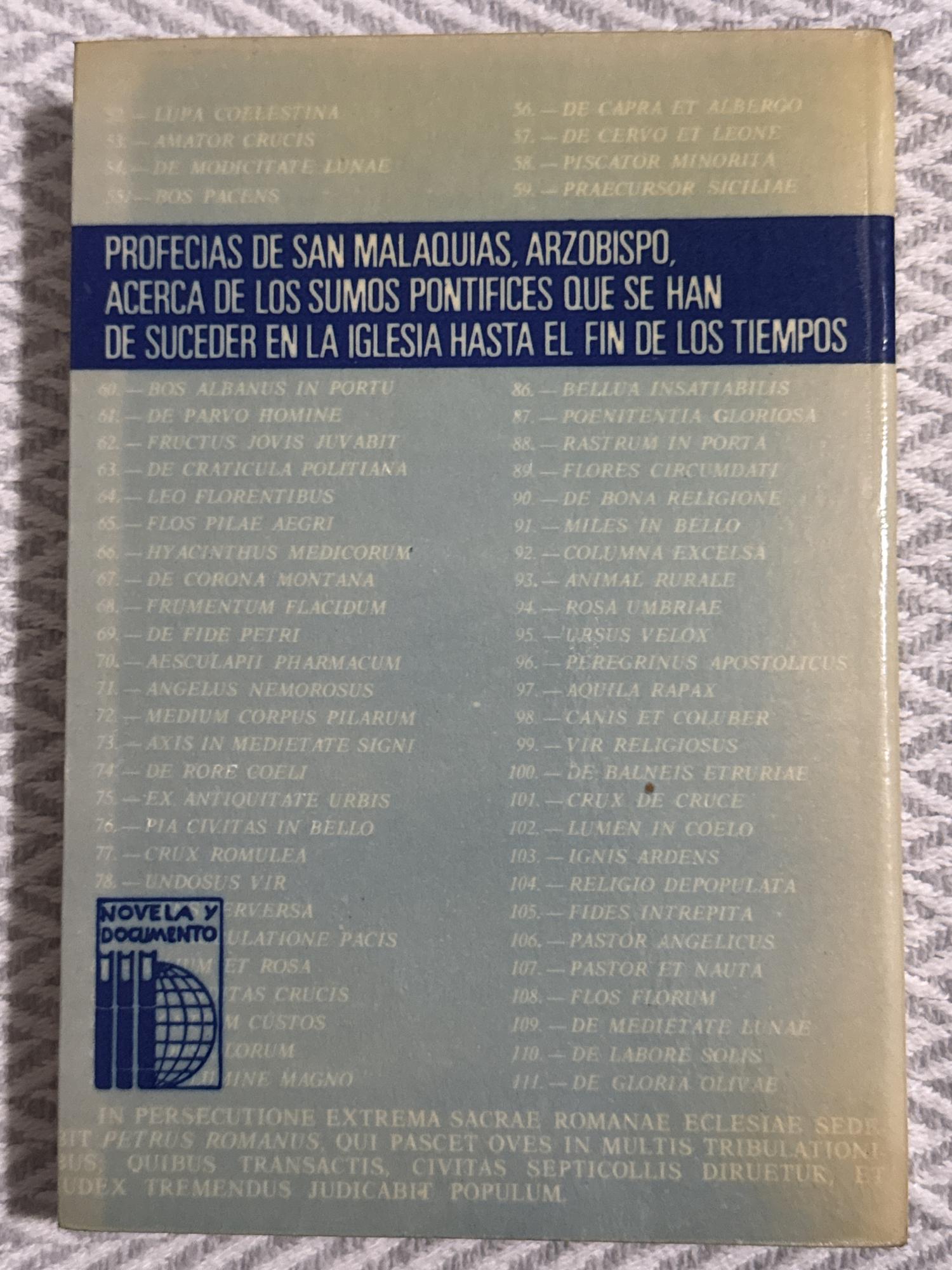 Y dijo el ángel: no habrá más tiempo es una obra de divulgación religiosa y apocalíptica centrada en los llamados vaticinios atribuidos a San Malaquías sobre los papas y el fin de los tiempos. El libro presenta y comenta estas profecías desde una perspectiva histórico-religiosa y especulativa, vinculándolas con la tradición escatológica del cristianismo.